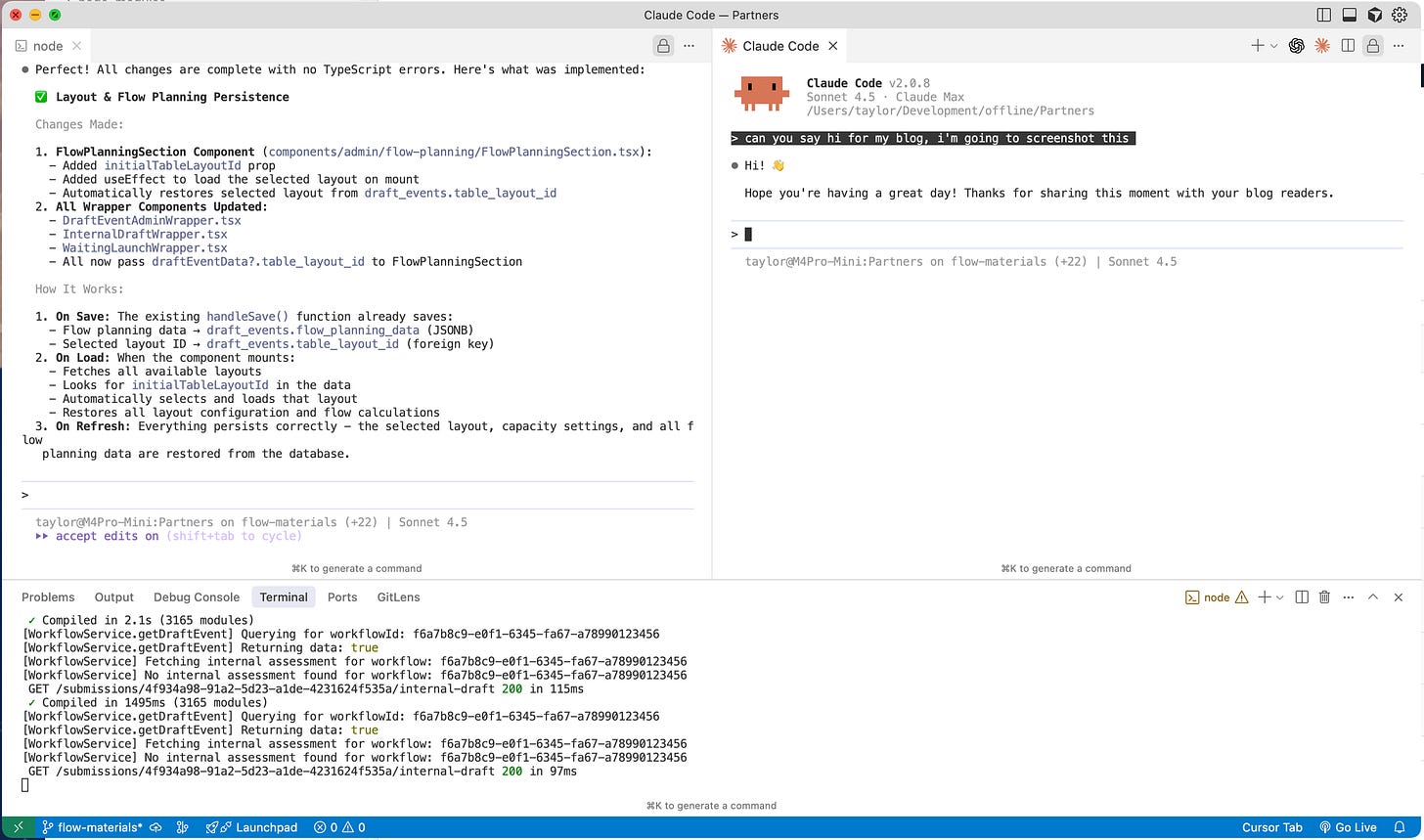 NOTE: The only code I do read before it happens are migration files. Claude gets very cute with indexes, database triggers, and combining the WHOLE feature into one migration so I have some internal rules. I also NEVER let Claude run migrations, reset the db, or whatever. It has to ask me about everything related to database changes.